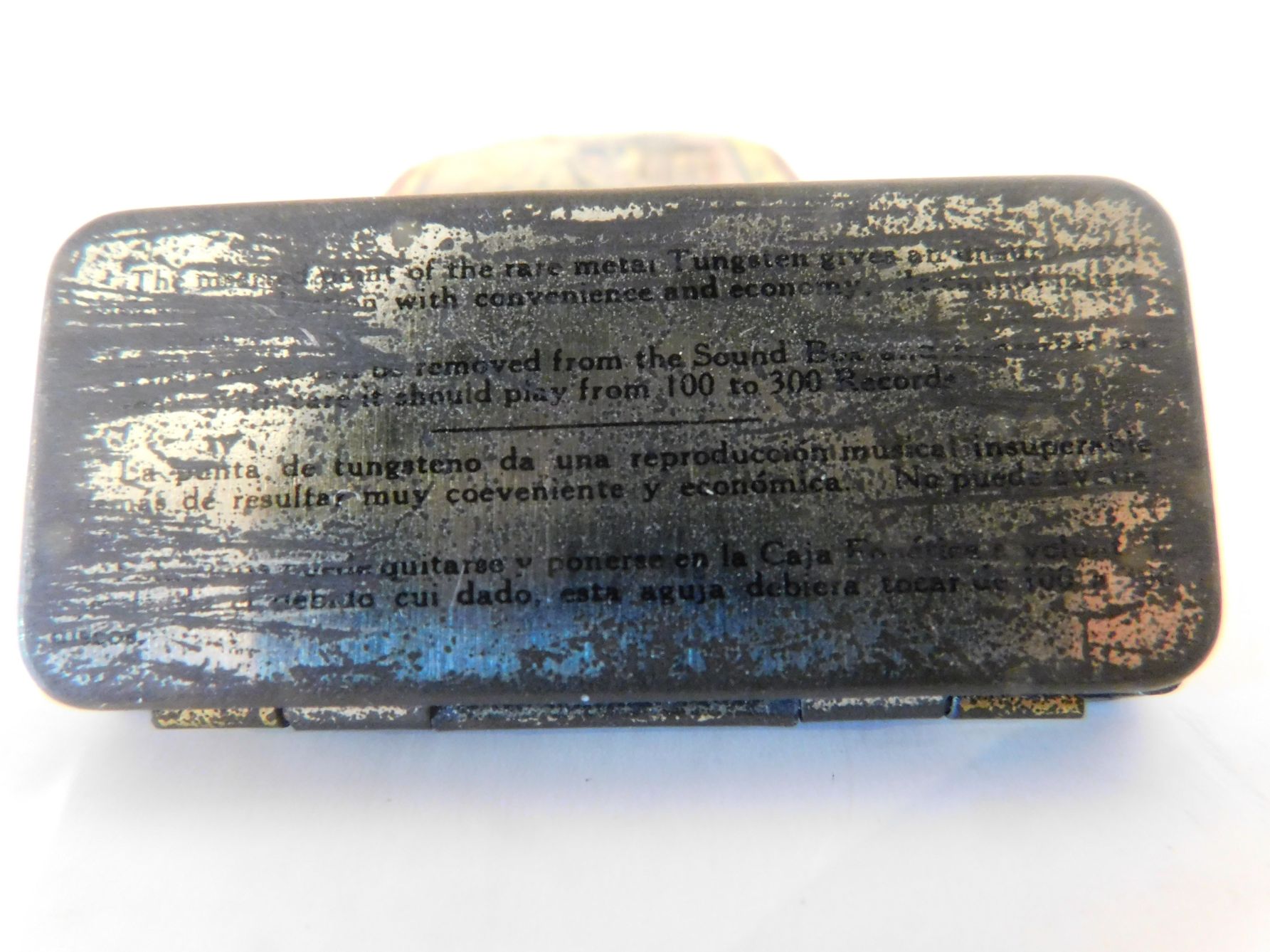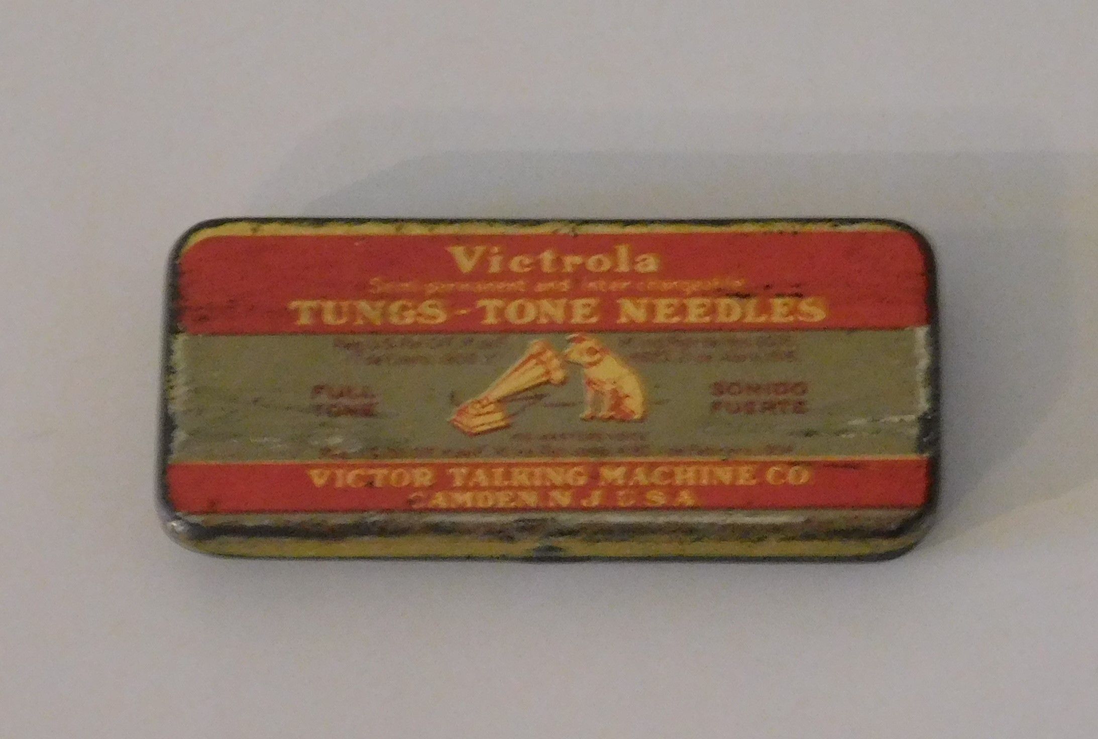 This is an empty Victor Tungs-Tone needle tin. These needles were originally used on Orthophonic Victrola.